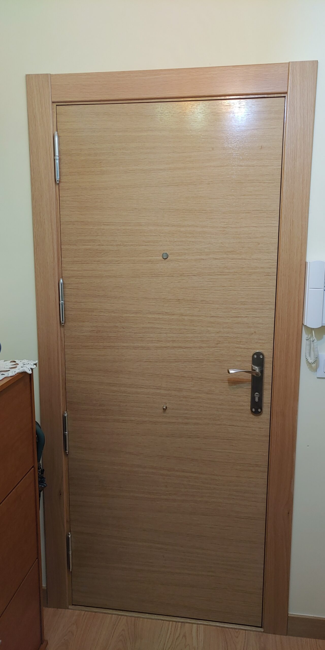 Nuestras puertas semiacorazadas combinan la estética de la madera con una estructura interior reforzada que ofrece mayor seguridad para el hogar o el negocio. Diseñadas a medida, con acabados personalizados y materiales de alta calidad, son la solución ideal cuando se busca elegancia y protección. Descubre algunos de nuestros trabajos.